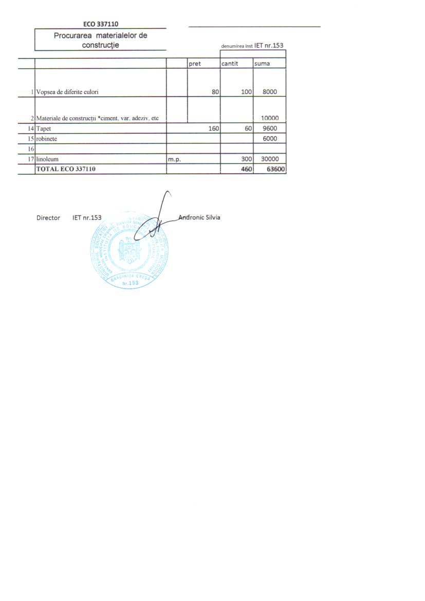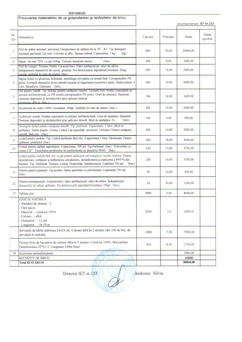 - ECO 336110 Procurarea materialelor de uz gospodăresc și rechizite de birou